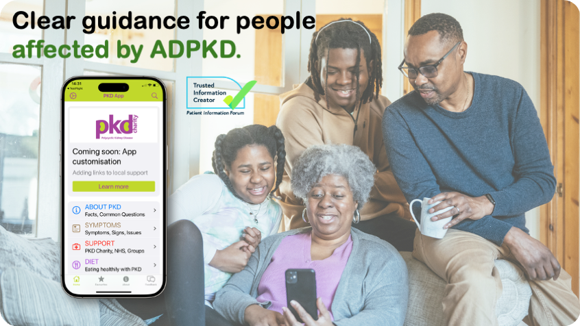 The PKD App is a trusted, free self-care and education app used by NHS renal teams, charities, and patient organisations to support people living with autosomal dominant polycystic kidney disease (ADPKD).
